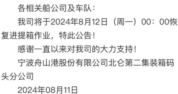 爆炸事故后,码头已恢复进提作业 2024.08.13