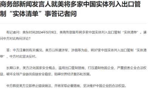 美方将37家中国实体列入出口管制“实体清单”!商务部回应! 2024.05.13
