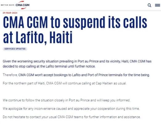 这些地区面临混乱!船公司提醒:停止订舱+延误预警 2024.04.01